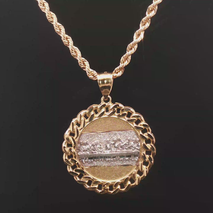 10K Last Supper Pendant - Measures 1 1/3" by 2" with bail, Weights 7-8 grams (Two Tone) 10K Rope Chain...