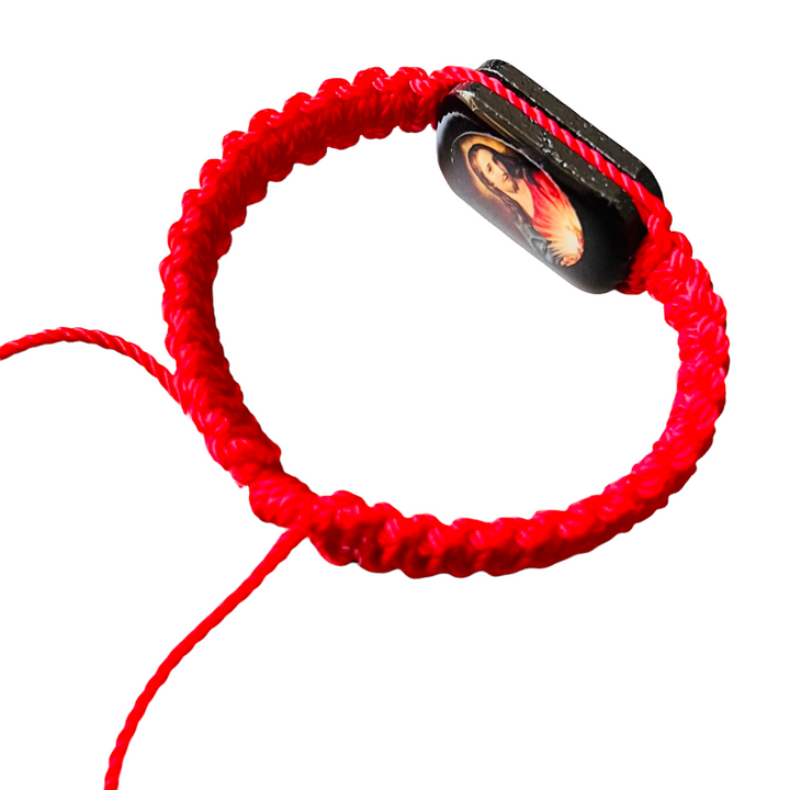 Sacred Heart of Jesus Bracelet Handmade Double Side - Reversible Color image of Sacred Heart of Jesus on both sides Wood charm Red color knotted rope Adjustable Made in Mexico Pulsera...