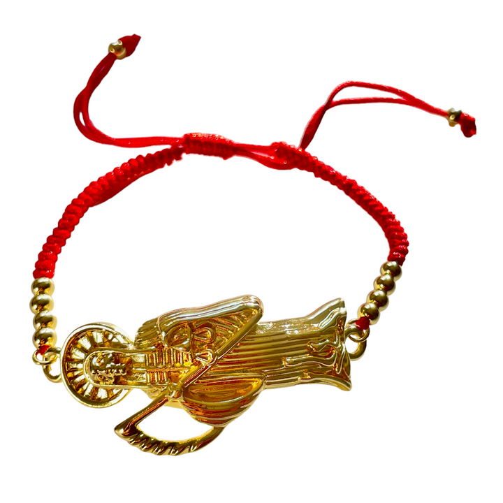 Santa Muerte Bracelet Knotted Red Rope Santa Muerte Pendant is 24K Gold Filled Pendant Measures 50mm Bracelet is Adjustable - One Size Fits All Pulsera de La Santa Muerte Hecho con Hilo...