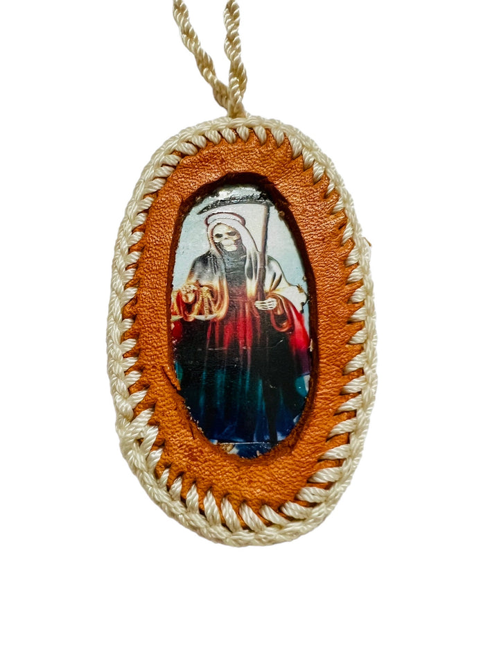 Santa Muerte Leather Scapular Necklace