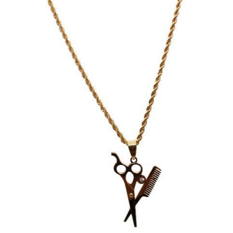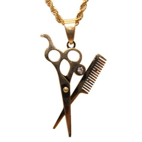 Scissors Comb with Necklace Scissors Comb Pendant Includes a 24" Necklace that is Gold Filled over Stainless Steel Pendant is 24K Gold Filled over Stainless Steel Pendant Measures 1 3/4" Necklace Measures 24"...