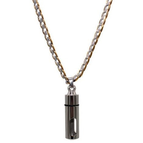 Secret Capsule Pill Pendant with Necklace Secret Capsule Pill Stash Pendant - The top can be unscrewed to place your pills, powders, etc. Necklace is Stainless Steel - Two Tone Pendant is Stainless Steel...