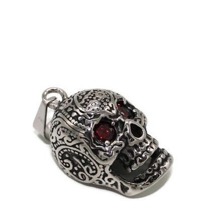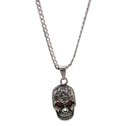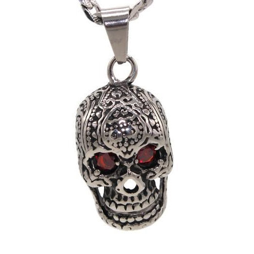 Skull Pendant with Necklace Skull Pendant - Red Eyes Day of the Dead Style Necklace is Stainless Steel Pendant is Stainless Steel Pendant Measures 2" Necklace Measures 26"- 5mm Calavera Medalla con Cadena...