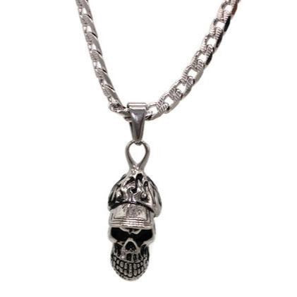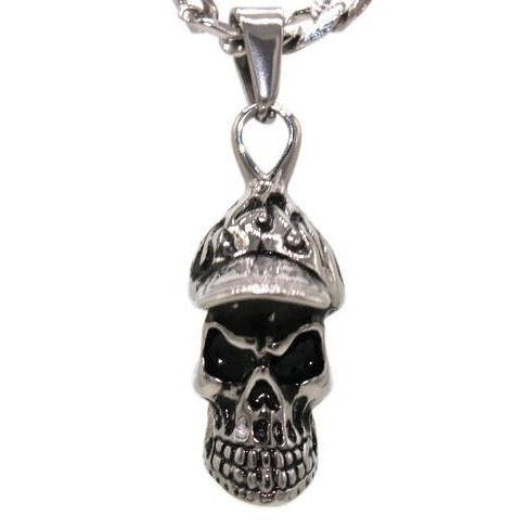 Skull with Hat Pendant with Necklace Skull with Hat Pendant Necklace is Stainless Steel Pendant is Stainless Steel Pendant Measures 1 3/4" Necklace Measures 26"- 5mm Calavera con Gorra Medalla con Cadena...