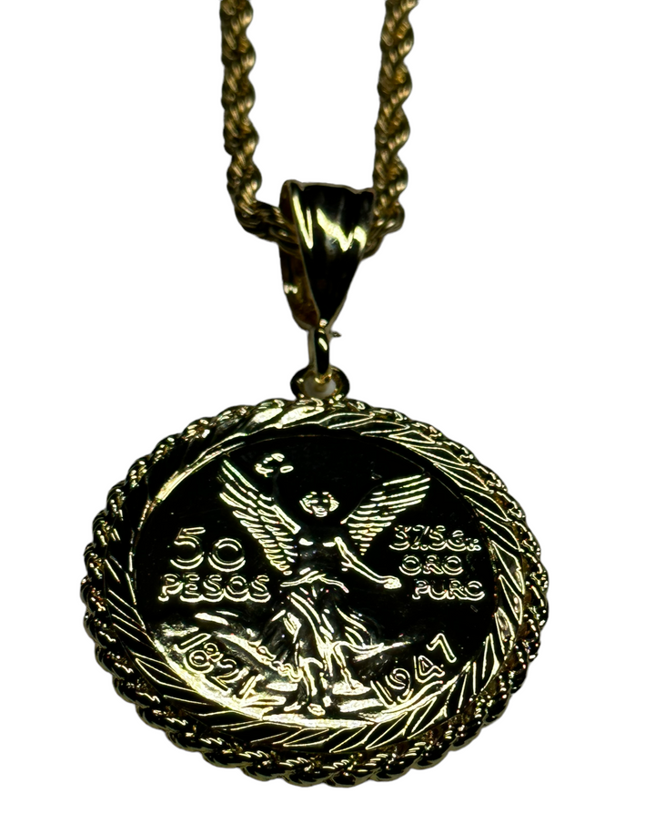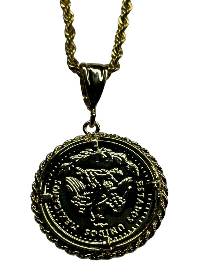 Centenario with Necklace Centenario Pendant has 50 Pesos in the front and Mexican Eagle in the back Includes a 26" Figaro Necklace that is Gold Filled over Stainless Steel 24K Gold...