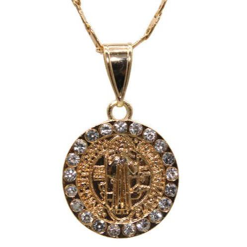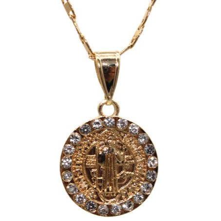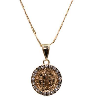 St Benedict Necklace St Benedict Pendant - Has White Color Stones around Includes a 22" Necklace that is Gold Filled 24K Gold Filled Pendant Measures 1 1/4" Necklace Measures 22" San Benito con Cadena Medalla...
