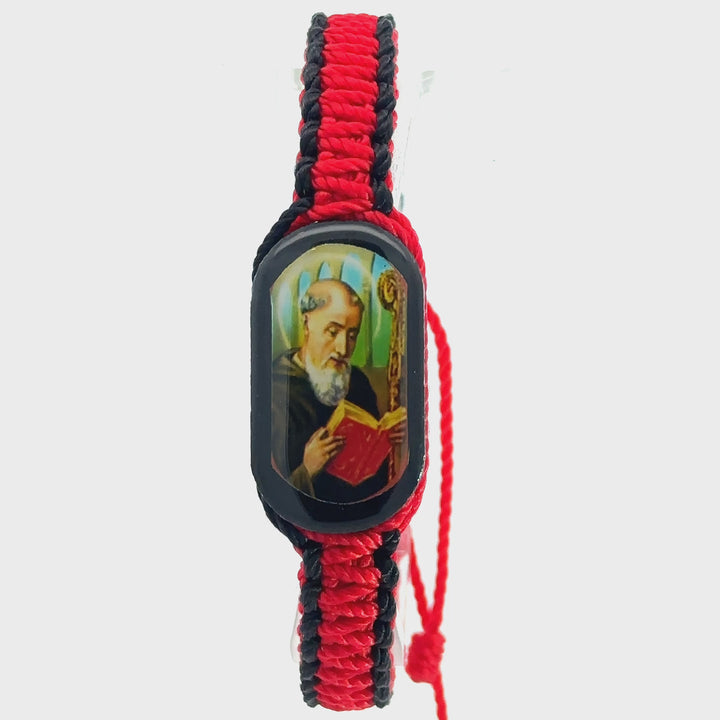St Benedict Reversible Bracelet Handmade Double Side St Benedict Color Image on Front and Back Wood Charm Red and Black Color Adjustable Made in Mexico San Benito Pulsera Hecho a Mano...