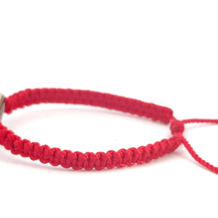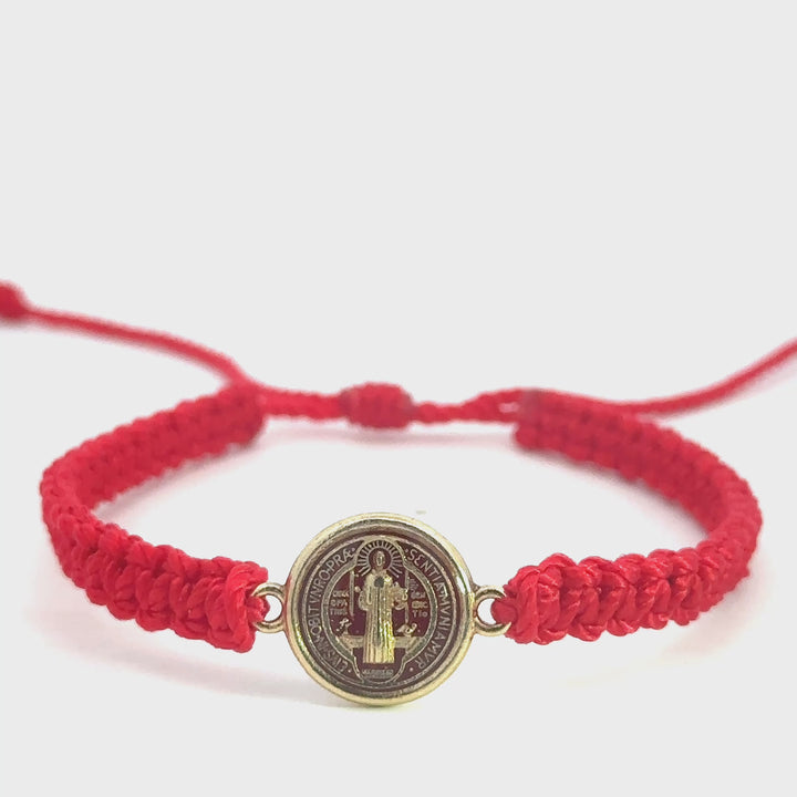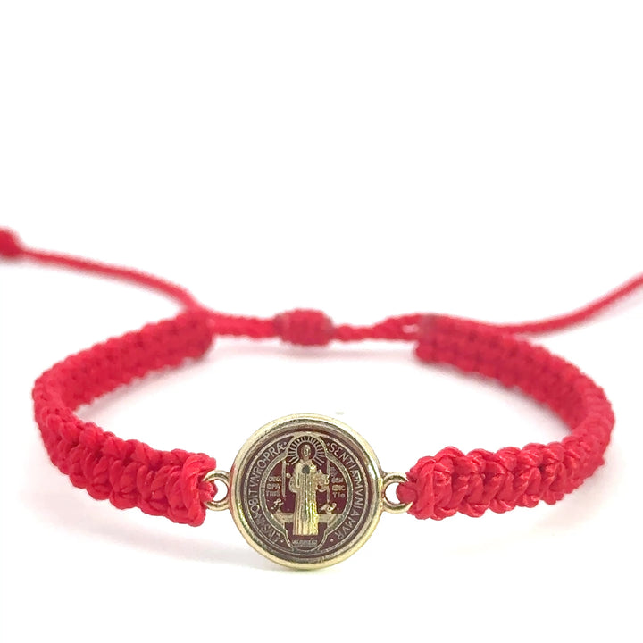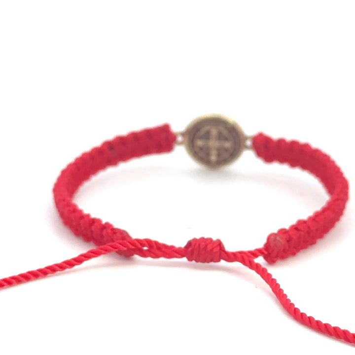 St Benedict Bracelet Handmade Small Metal Pendant with St Benedict Emblem Reversible Red Color Made with Nylon Knotted Rope Adjustable San Benito Pulsera Hecho a Mano Medalla de Metal Pequeno con Emblema de San...