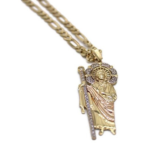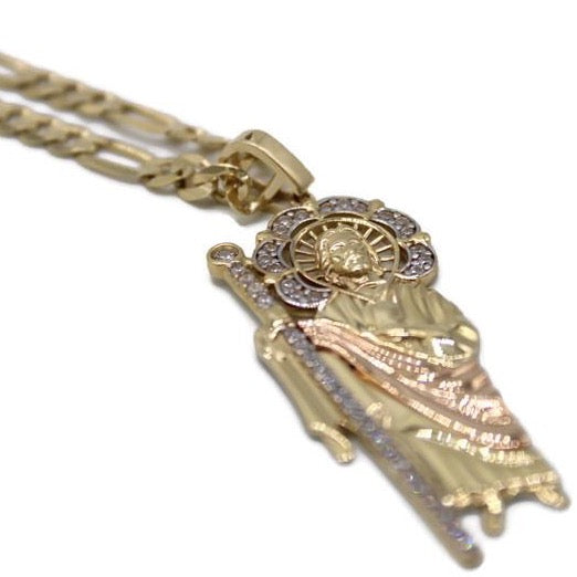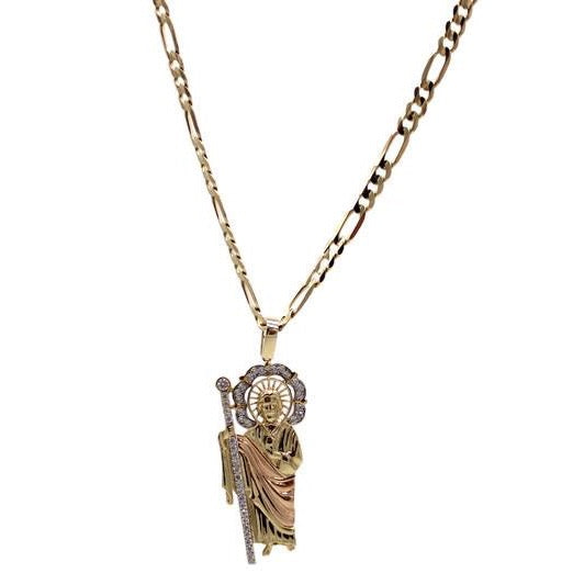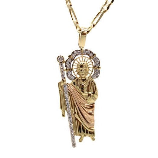 14K Gold St Jude 14K Real Solid Gold St Jude Two Tone Pendant with Shinny Stones Pendant Measures approximately 2 1/4" Pendant weights 5.6 grams You can purchase only pendant or...