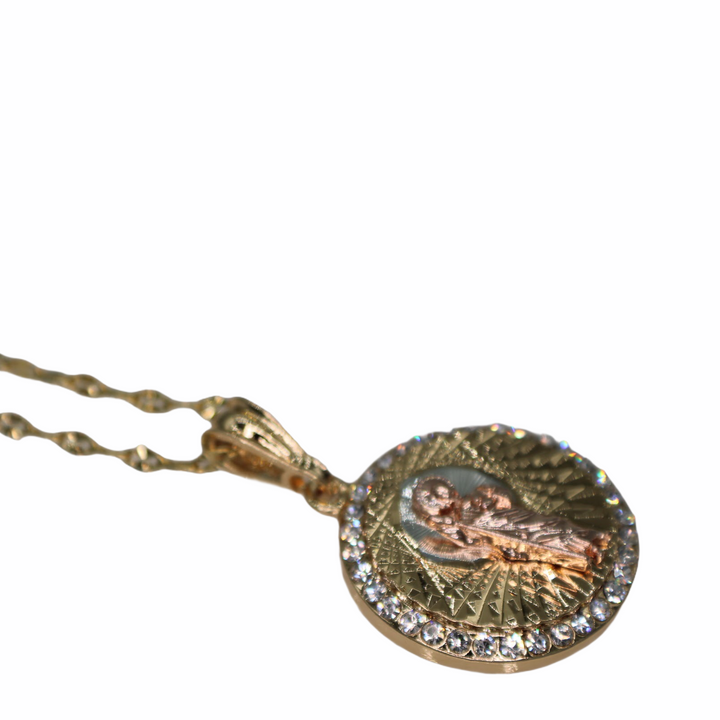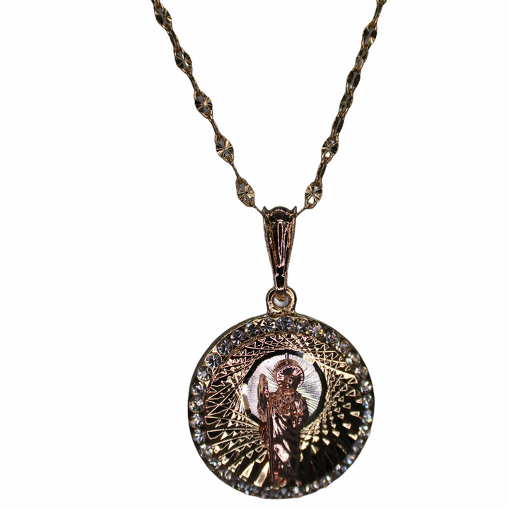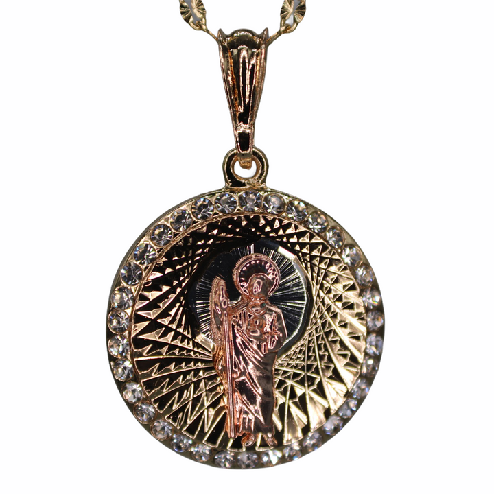 St Jude St Jude Pendant - Three Tone with White Shinny Stones Pendant and Necklace are 24K Gold Filled Pendant Measures 1 5/8" Necklace Measures 20" San Judas Medalla de San Judas - Tres Tonos con...