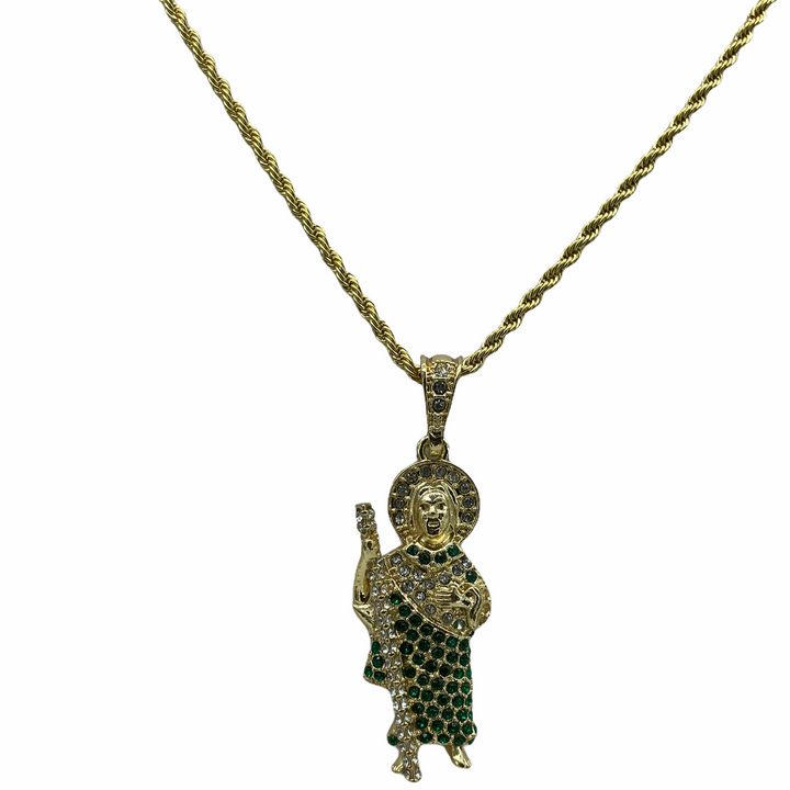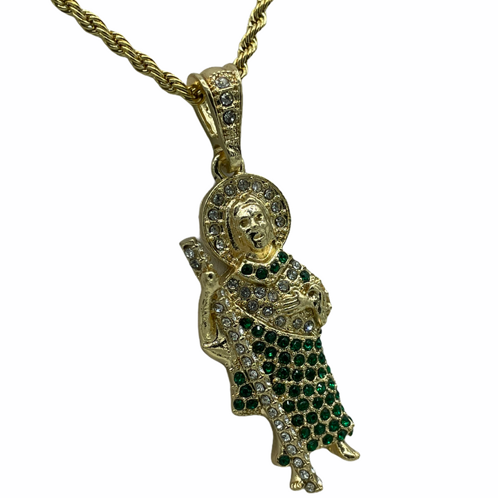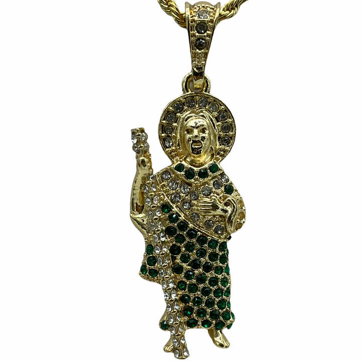 St Jude St Jude Pendant - Green Stones Rope Necklace 24K Gold Filled Pendant Measures - 2" Necklace Measures - 22" San Judas Medalla de San Judas - Piedras Verdes Cadena...