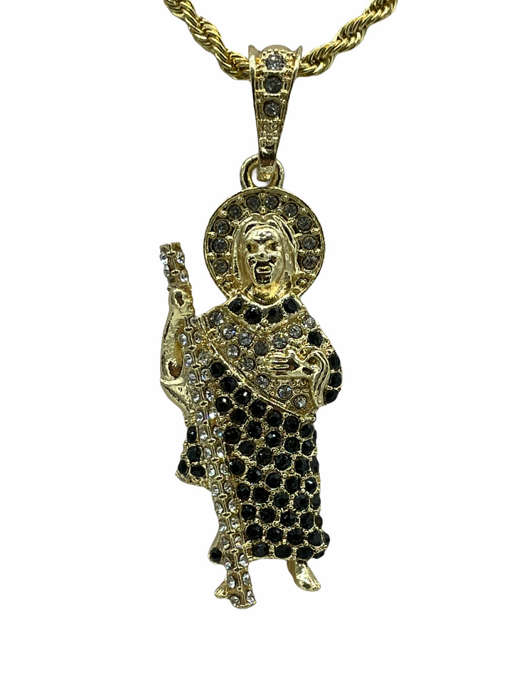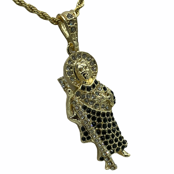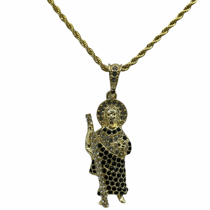 St Jude St Jude Pendant - Black Stones Rope Necklace 24K Gold Filled Pendant Measures - 2" Necklace Measures - 22" San Judas Medalla de San Judas - Piedras Negras Cadena...