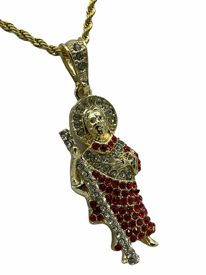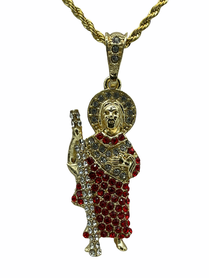 St Jude St Jude Pendant - Red Stones Rope Necklace 24K Gold Filled Pendant Measures - 2" Necklace Measures - 22" San Judas Medalla de San Judas - Piedras Rojas Cadena...
