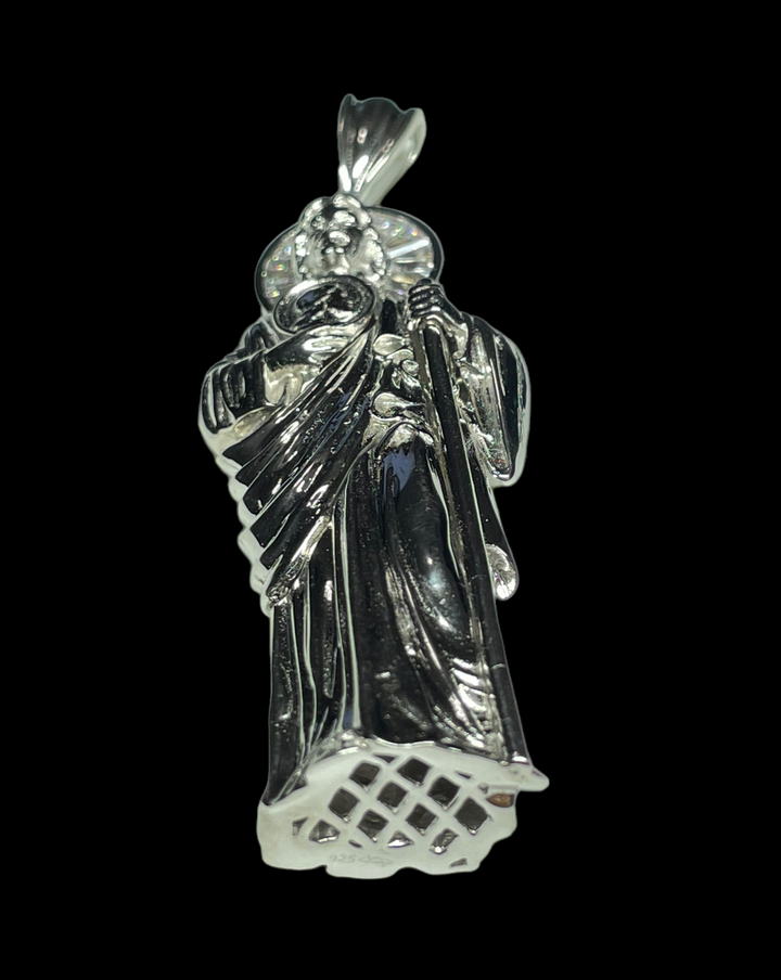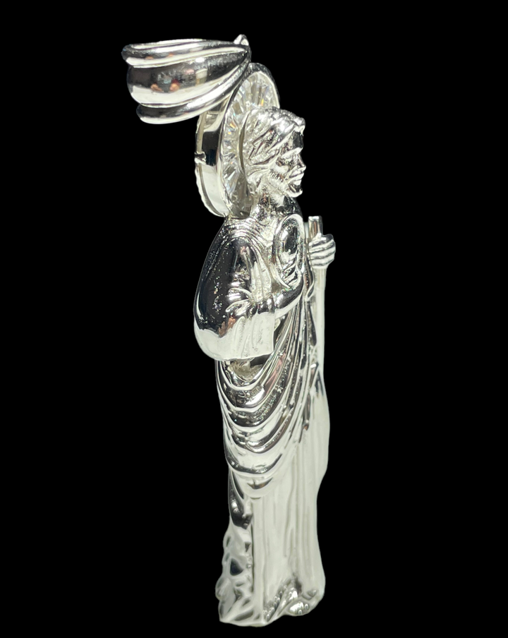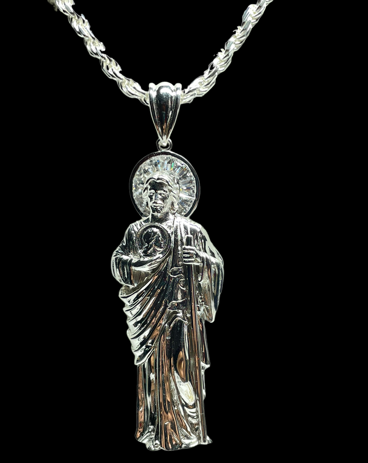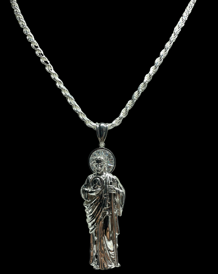 St Jude Sterling Silver .925 3D Pendant Option to purchase only pendant or with rope chain Pendant Measures 72 mm tall (3" tall) Rope Necklace Measures 26" San Judas Plata Pura...