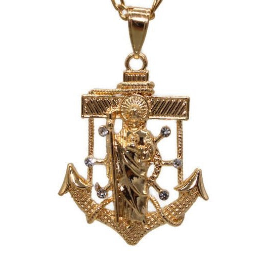 St Jude Anchor with Necklace St Jude Anchor Pendant Includes a 24" Necklace that is Gold Filled over Stainless Steel 24K Gold Filled Pendant Measures 2" Necklace Measures 24"- 3mm San...
