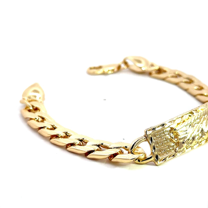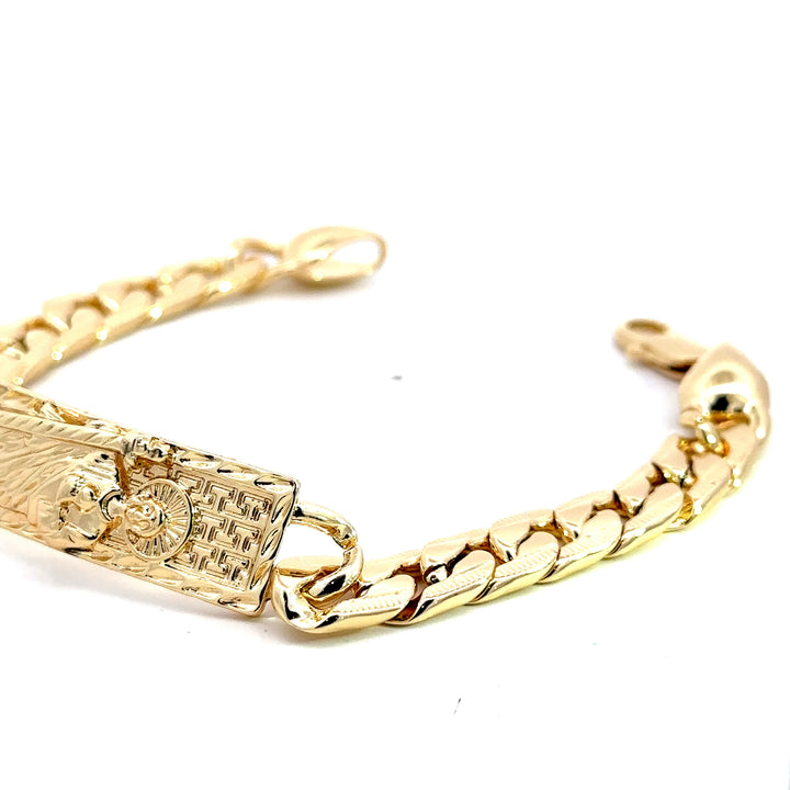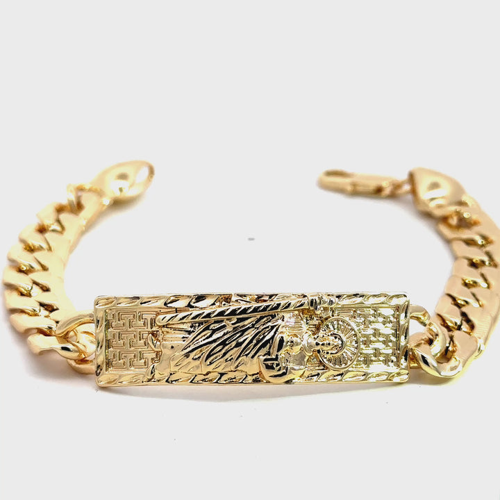 St Jude Bracelet Gold Filled Cuban Link Style St Jude Pendant Bracelet Measures 8" Pulsera de San Judas Hecha de Oro Laminado Estilo Cubana Medallas de San Judas Mide 8"