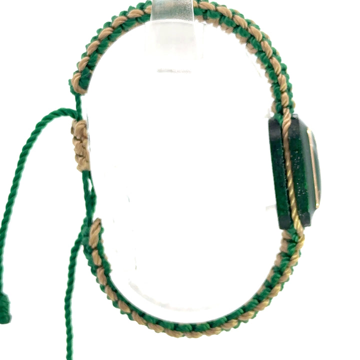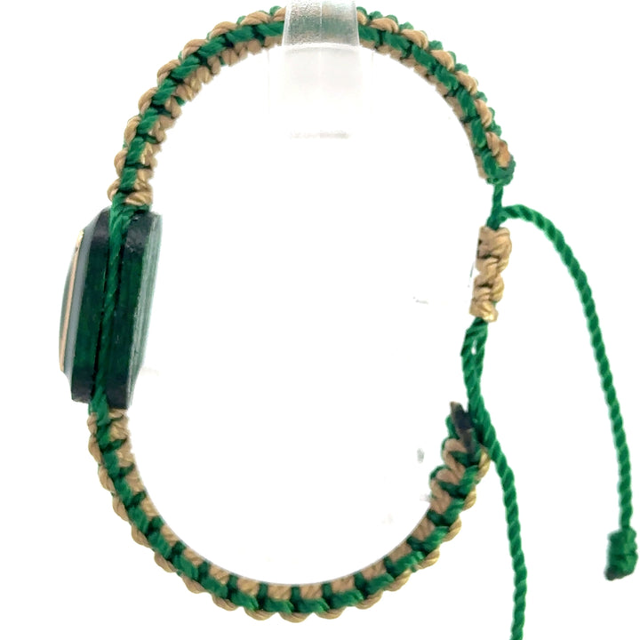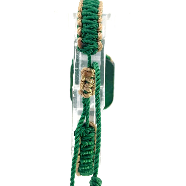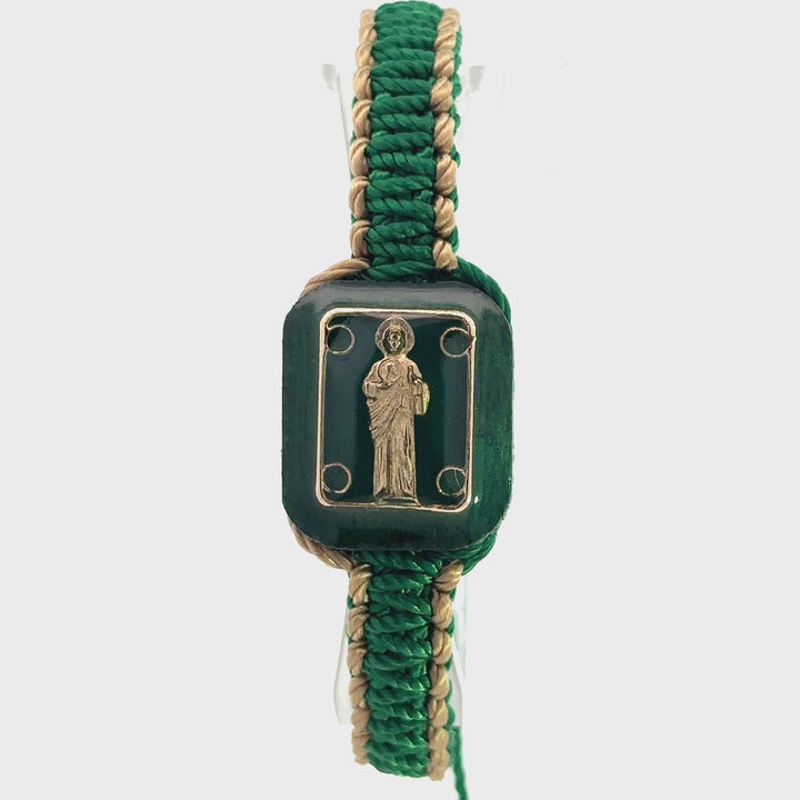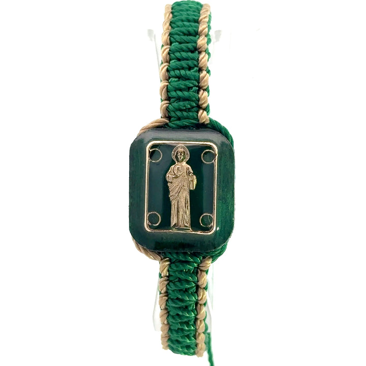 St Jude Bracelet Handmade St Jude Gold Plated image on top a Wood Charm Green and Tan Color Knotted Rope Adjustable Made in Mexico San Judas Pulsera Hecho a Mano Tiene...