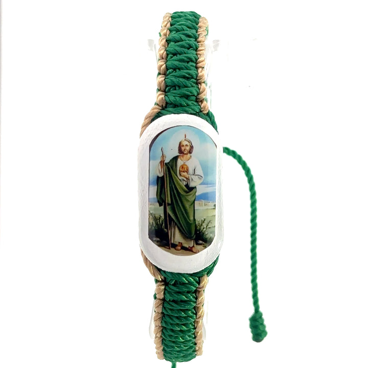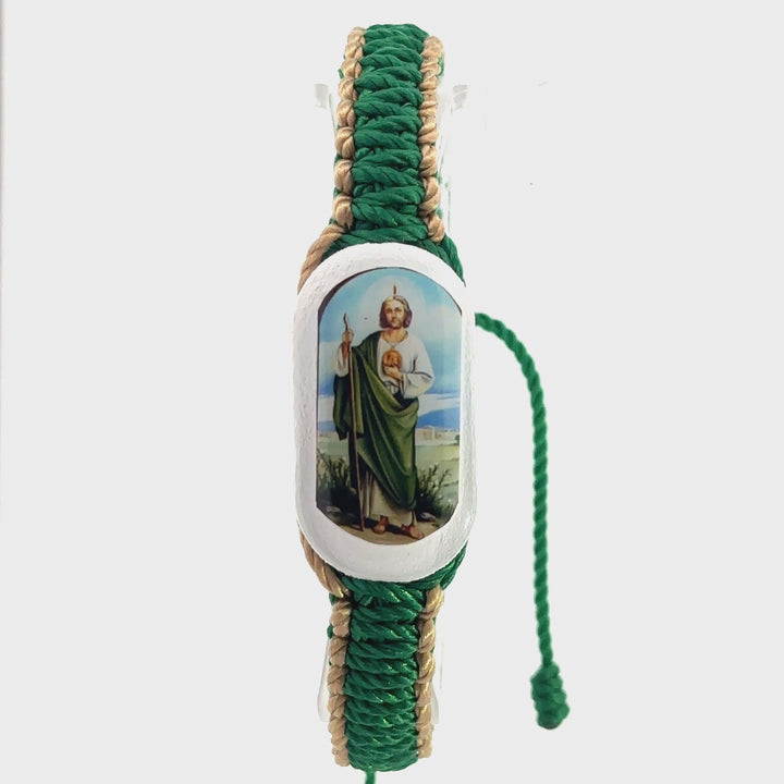 St Jude Reversible Bracelet Handmade Double Side Has St Jude Color Image on Front and Back Wood Charm Green and Tan Color Adjustable Made in Mexico San Judas Pulsera Hecho a Mano Medalla Doble...