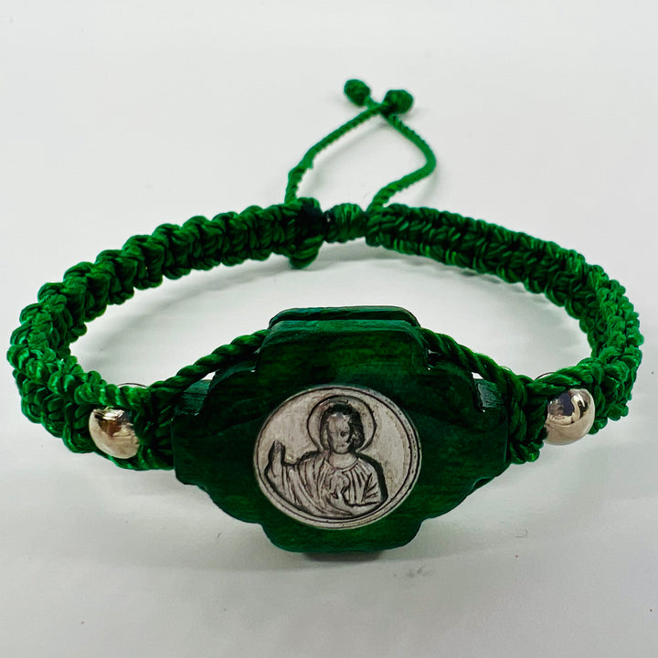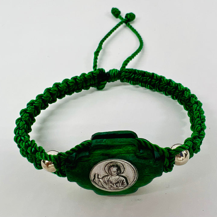 St Jude Bracelet Handmade Green Color Knotted Rope Metal St Jude Charm over Wood Pendant Adjustable - One size fits all Made in Mexico Pulsera de San Judas Hecho a Mano Color Verde Imagen...