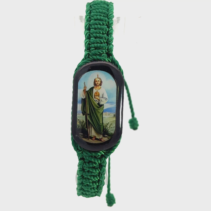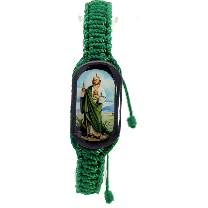 St Jude Handmade Bracelet Handmade Wood Charm Green Color Rope Made with Nylon Knotted Rope Adjustable Pulsera de San Judas Hecho a Mano Medalla de Madera Hilo Color Verde Hecho con...