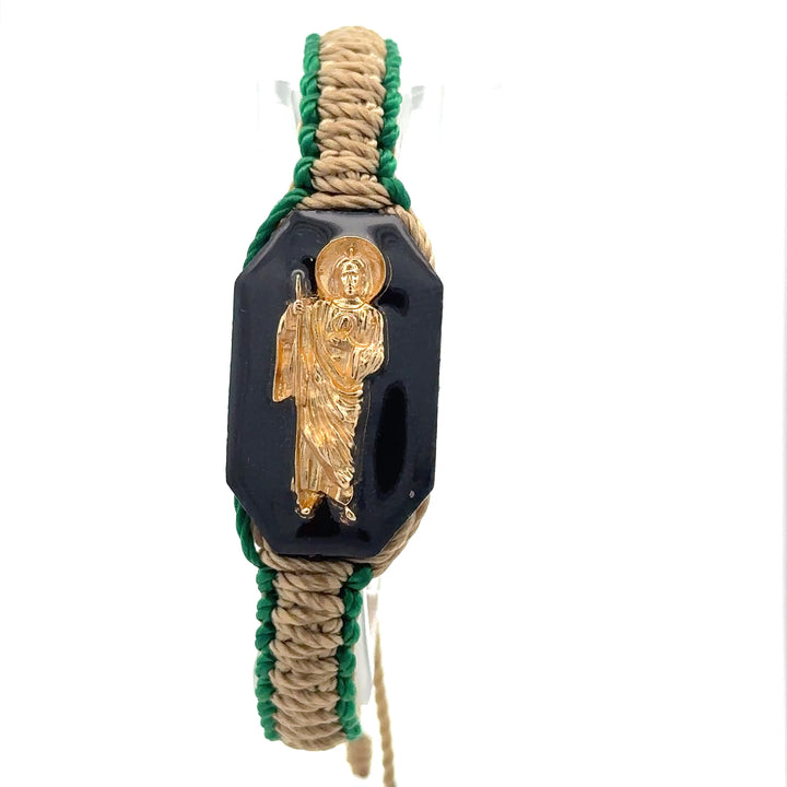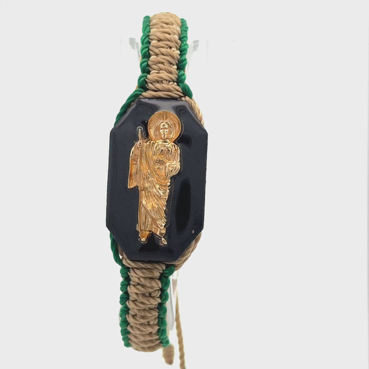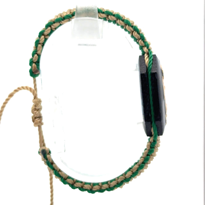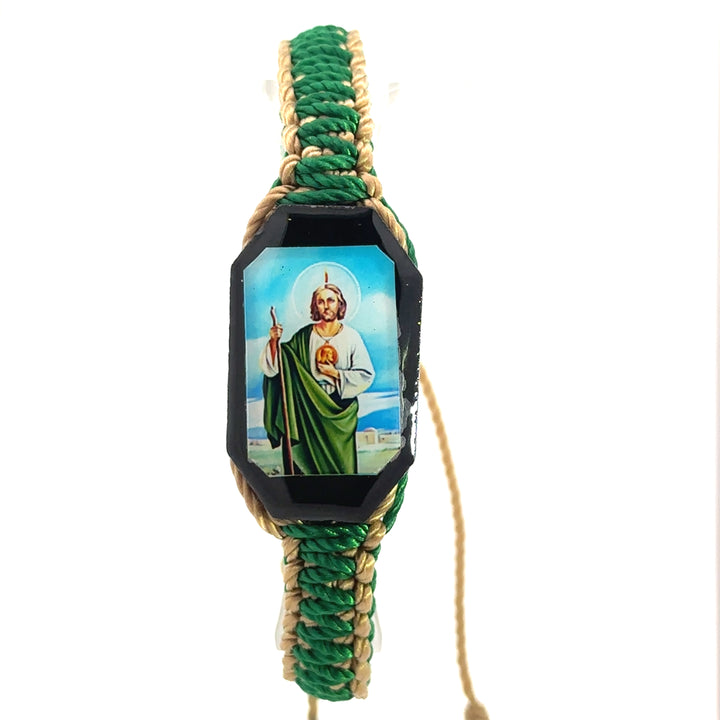 St Jude Reversible Bracelet Handmade Reversible Wood Charm Green and Tan Color Rope Made with Nylon Knotted Rope Adjustable Gold Plated St Jude Emblem on one side and color image on other...