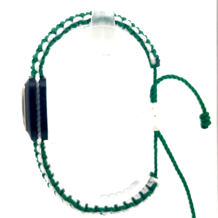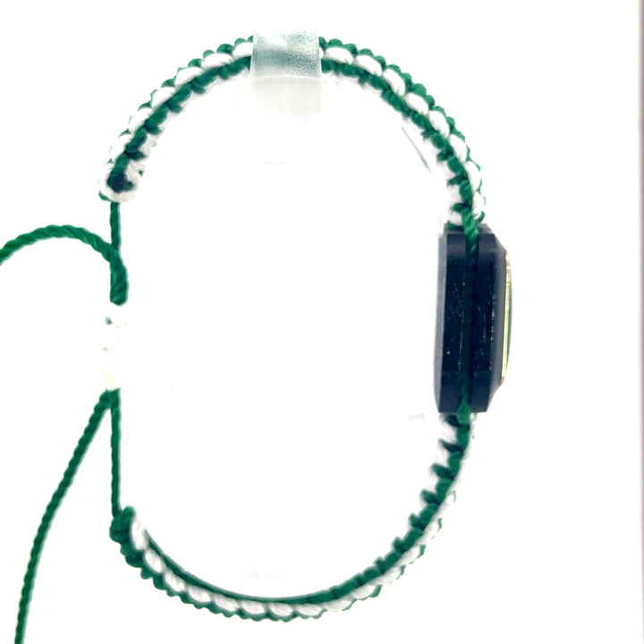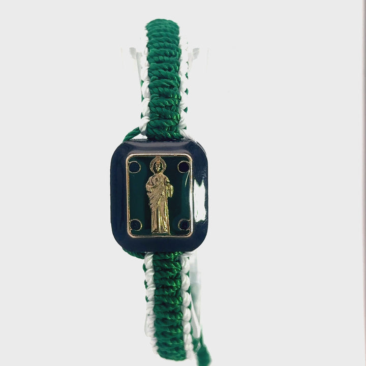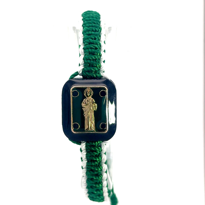 St Jude Bracelet Handmade St Jude Gold Plated image on top a Wood Charm Green and White Color Knotted Rope Adjustable Made in Mexico San Judas Pulsera Hecho a Mano Tiene la...