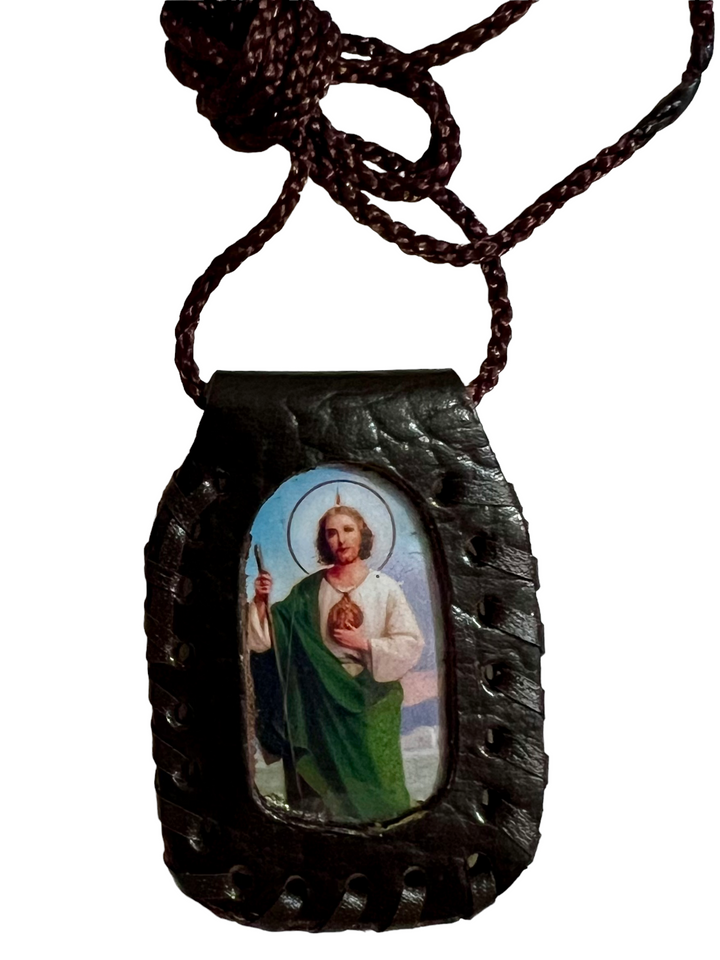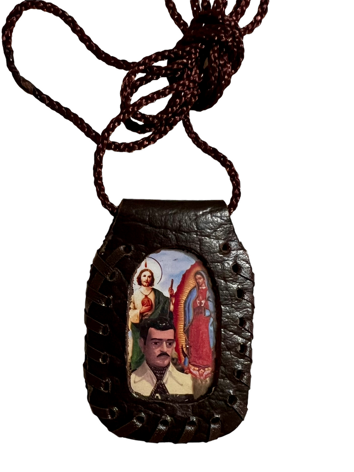 St Jude, Guadalupe and Malverde Scapular Leather Necklace