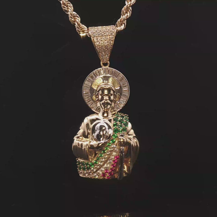 10K St Jude Pendant - Measures 2" with bail, Weights 10-11 grams (Stones are CZ) 10K Rope Chain - Measures...