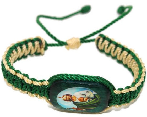 St Jude Handmade Bracelet Knotted Nylon Rope - Green and Cream Color Bracelet is adjustable - One size fits all Has a wood pendant on the center with the image of...
