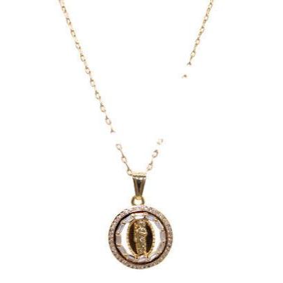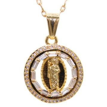 St Jude with Necklace St Jude Pendant - Round with White Color Stones Includes a 22" Necklace that is Gold Filled 24K Gold Filled Pendant Measures 1" Necklace Measures 22" San Judas con Cadena Medalla...