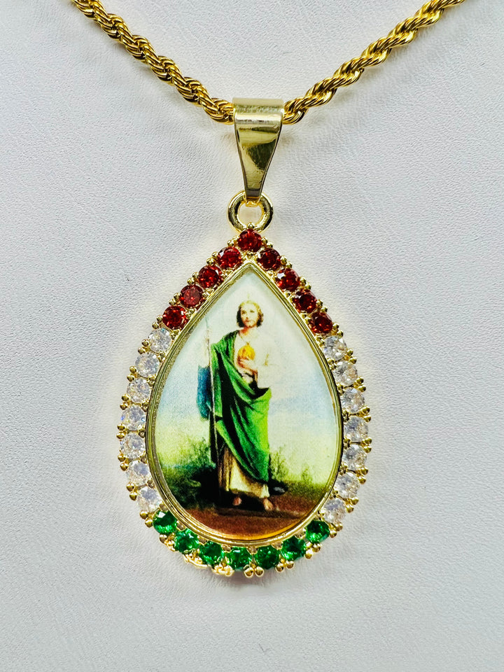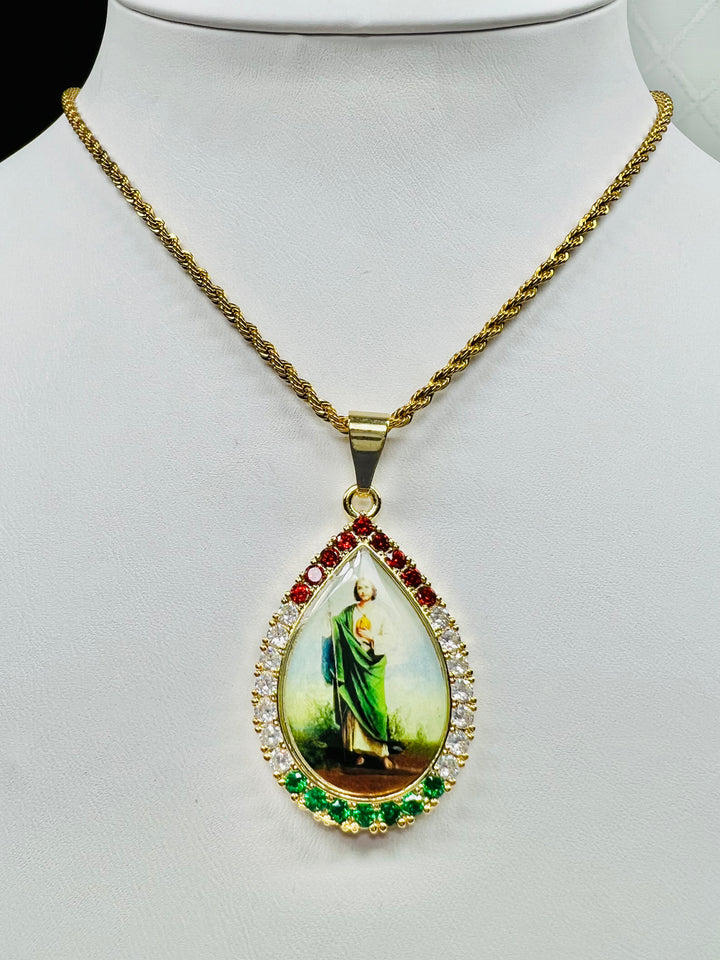 St Jude Tear Drop Pendant with Necklace St Jude Tear Drop Pendant - Has Mexican color stones (Red, White and Green) Includes a 22" Rope Necklace that is Gold Filled Pendant is 24K Gold Filled...