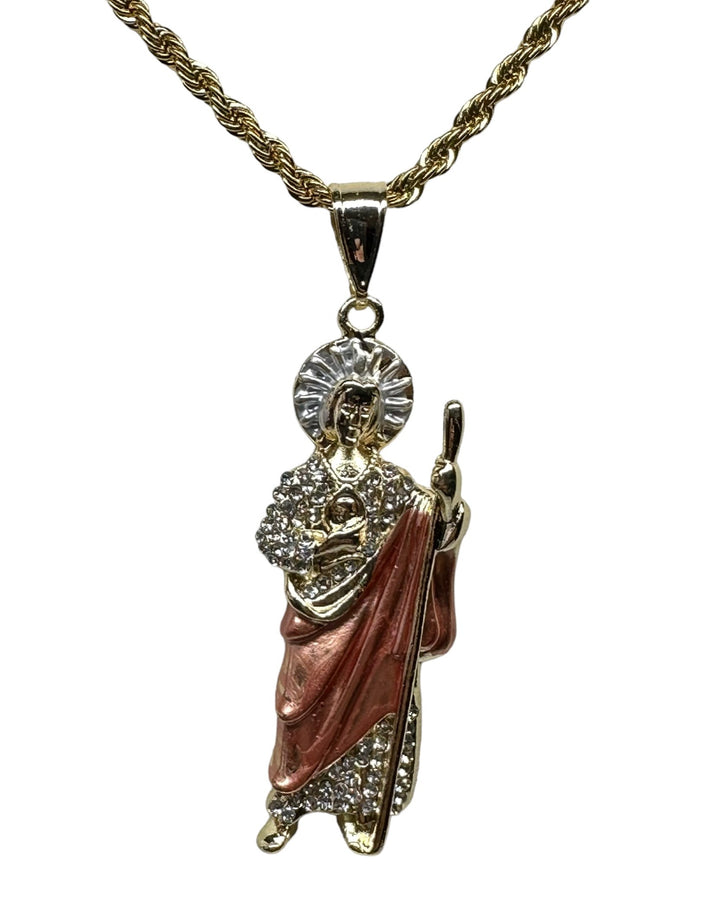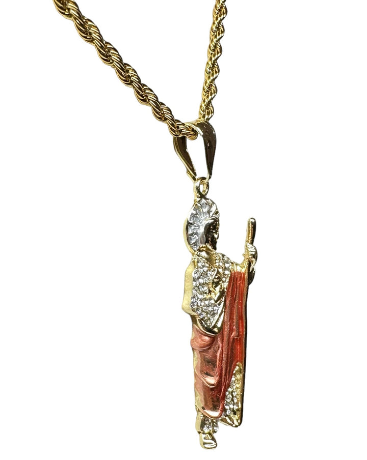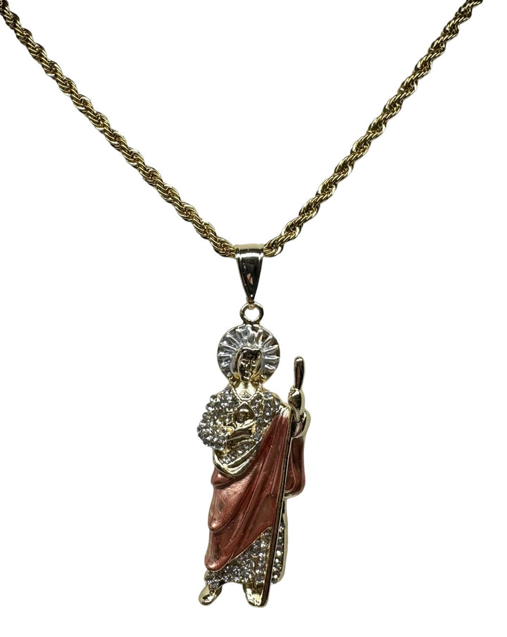 St Jude Pendant with Necklace St Jude Pendant White Stones Includes a 24" Gold Filled over Stainless Steel Necklace 24K Gold Filled Pendant Measures 2 1/4" Necklace Measures 24" Medalla de San Judas Con Cadena...