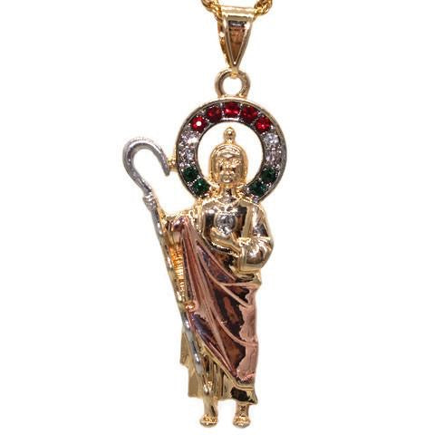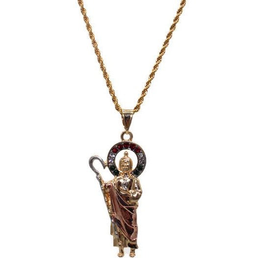 St Jude with Necklace St Jude Pendant - Three Tone with Mexican color Stones Includes a 24K Gold Filled Rope Necklace Pendant Measures 2 1/4" Necklace Measures 22"- 2mm Thick San Judas con Cadena Medalla de San...