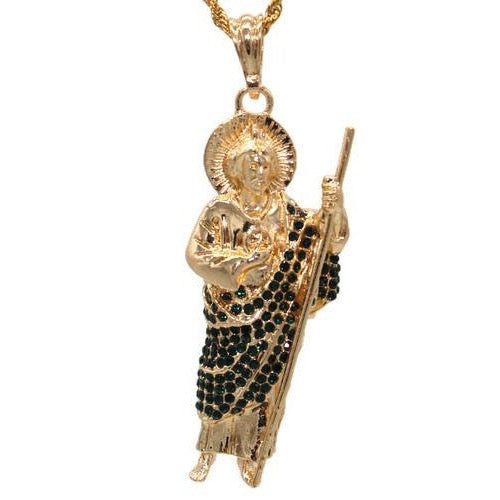 St Jude with Necklace St Jude Pendant - Has Green Stones Includes a 24" Necklace that is Gold Filled over Stainless Steel 24K Gold Filled Pendant Measures 2 3/4" Necklace Measures...