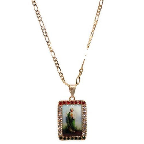 St Jude with Necklace St Jude Pendant - Has Green, White and Red Stones Includes a 24" Necklace that is Gold Filled over Stainless Steel 24K Gold Filled Pendant Measures 1 3/4"...