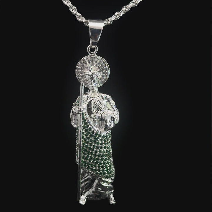 St Jude Necklace Sterling Silver .925 Rope Necklace Measures 24" Pendant Measures 3"