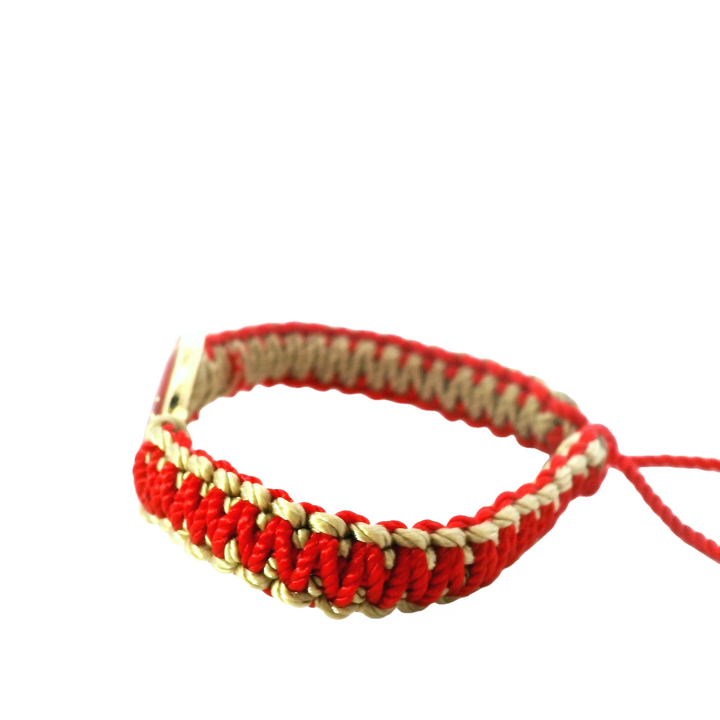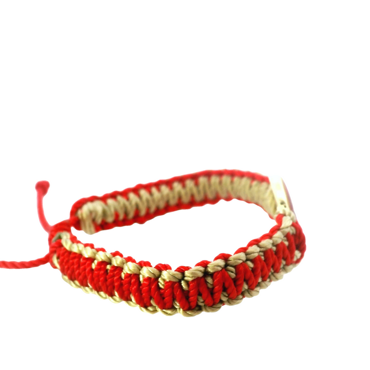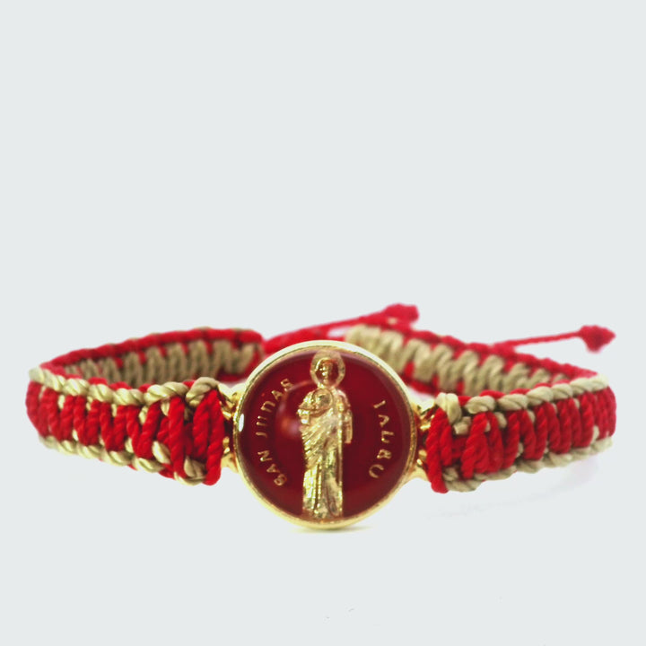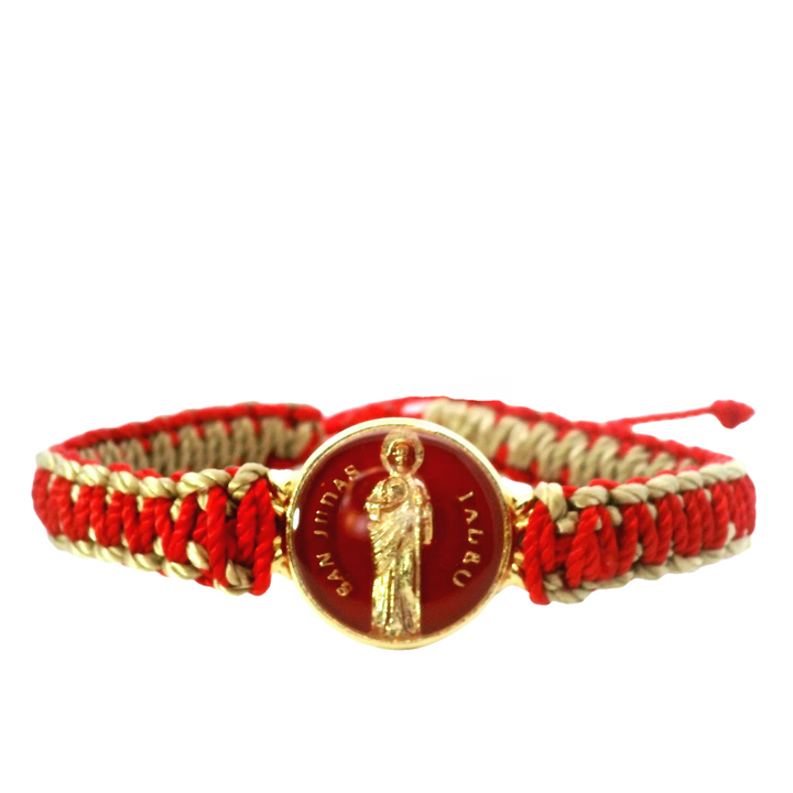 St Jude Bracelet Handmade Has a St Jude Gold Plated Charm Pendant Red and Tan Color Adjustable Made in Mexico San Judas Pulsera Hecho a Mano Medalla con la imagen de...