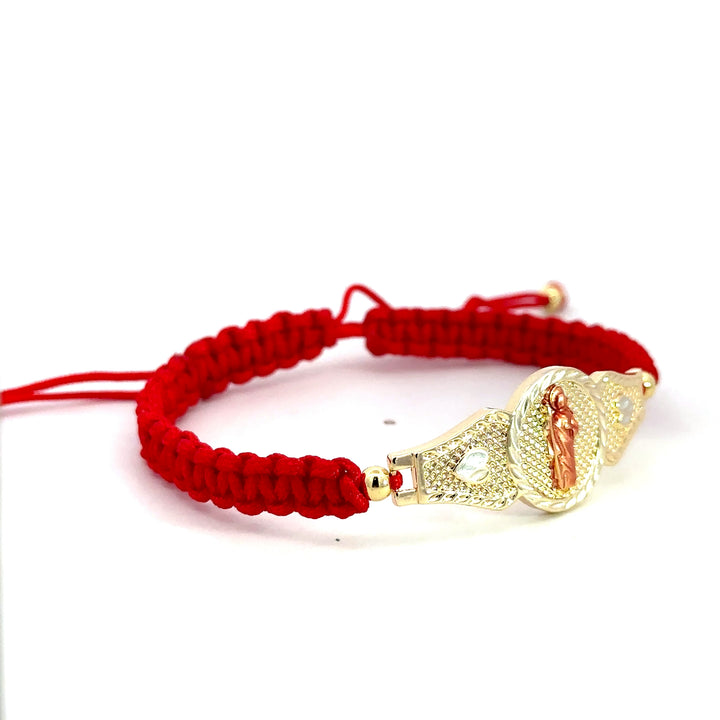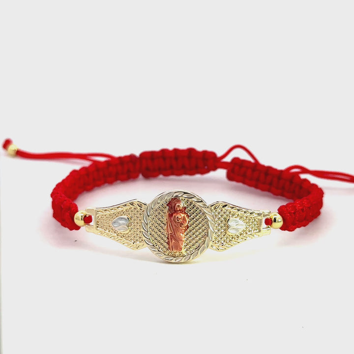 St Jude Bracelet Red Color Knotted Rope Adjustable Gold Plated Pendant