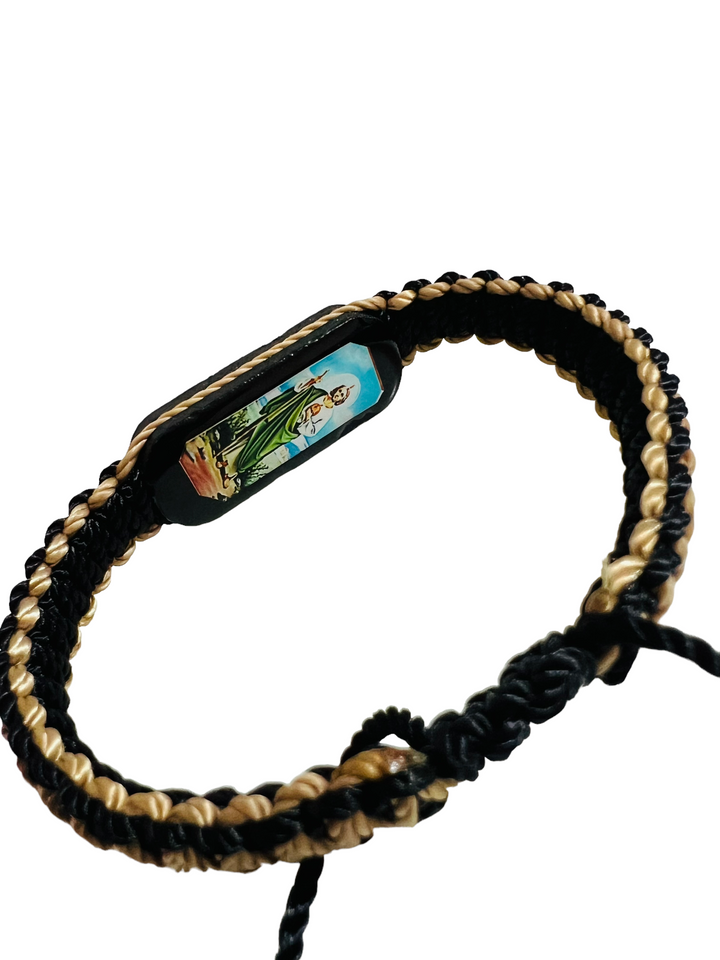 St Jude Reversible Bracelet Handmade Double Side Has St Jude Color Image on Front and Back Wood Charm Black and Cream Color Adjustable Made in Mexico San Judas Pulsera Hecho a Mano Medalla Doble...