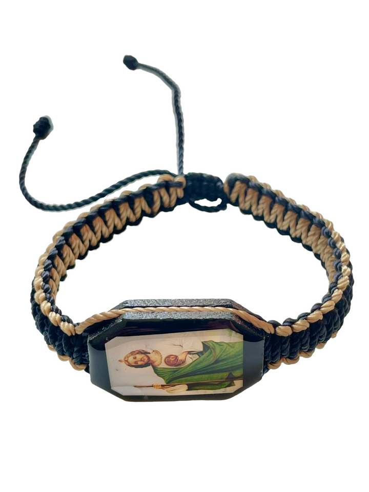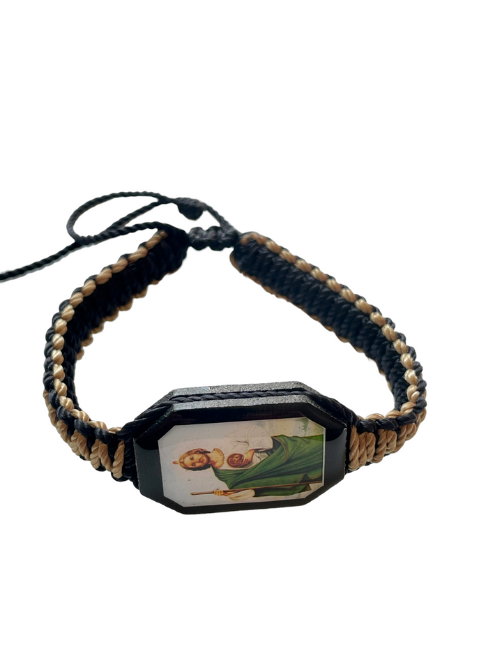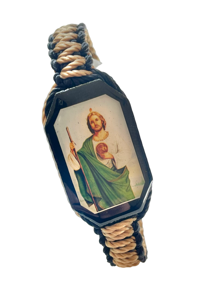 St Jude Reversible Bracelet Handmade Double Side Has St Jude Color Image on Front and Back Large Wood Charm Black and Cream Color Adjustable Made in Mexico San Judas Pulsera Hecho a Mano...