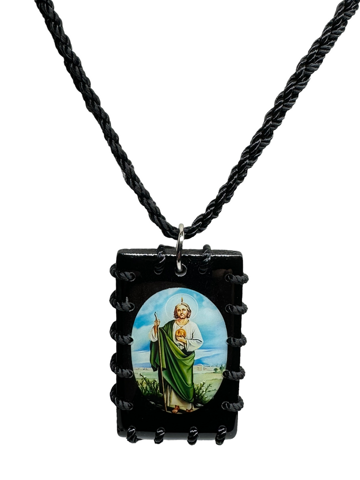 - Wood pendant with St Jude image on one side and Gold Plated charm on opposite side