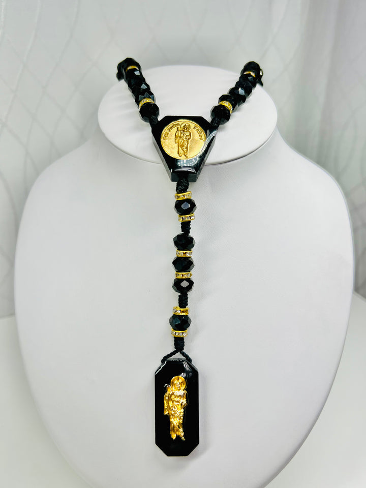 St Jude Rosary Necklace - Black