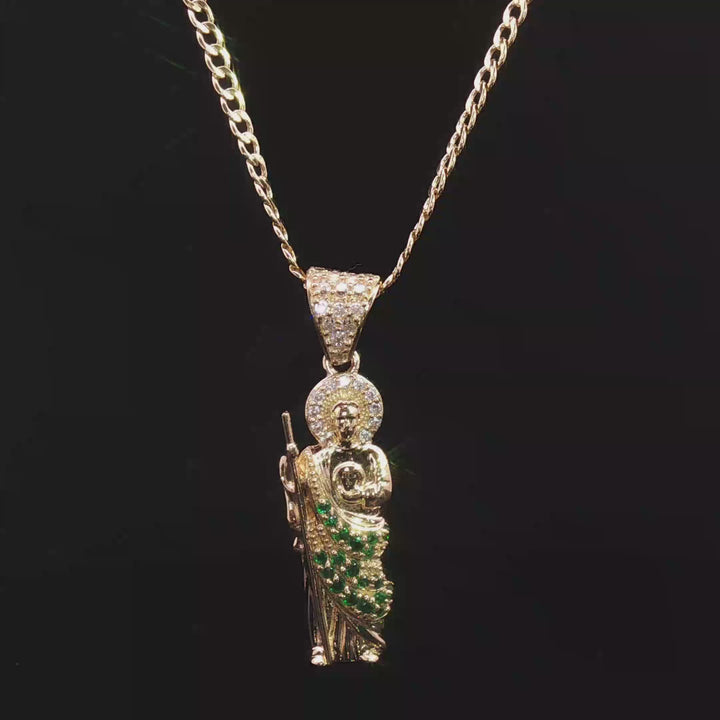 Small St Jude Pendant Material: 10K Gold Stones: CZ Weight: Approximately 2.2 grams Size: Approximately 1 1/2" Tall with bail Optional 22" or 24" Cuban Style Chain, Weigh Approximately 1.8...