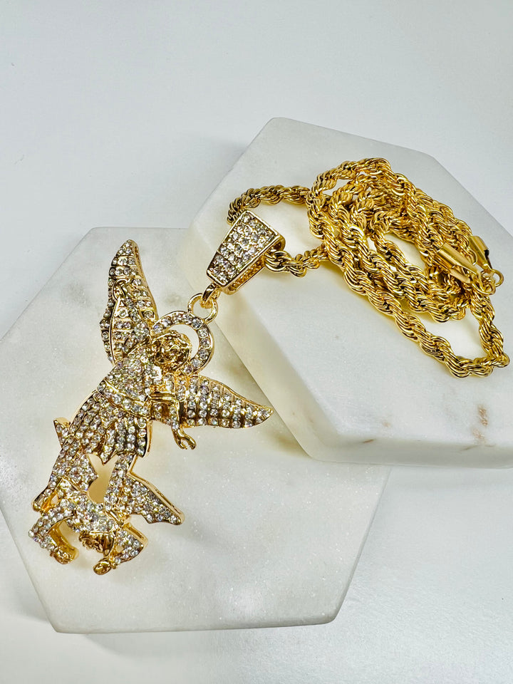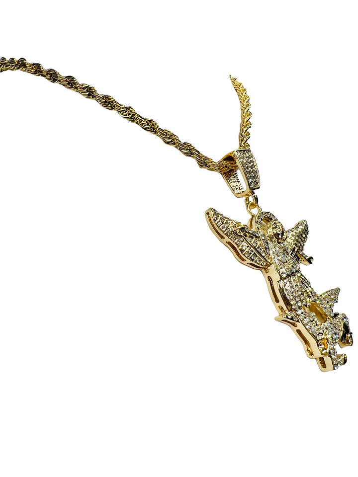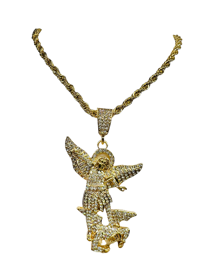 St Michael Archangel Large St Michael Archangel Pendant Pendant has white color CZ stones Includes a Rope 24K Gold Filled Stainless Steel Necklace 24K Gold Filled Pendant Measures 80mm Necklace Measures...