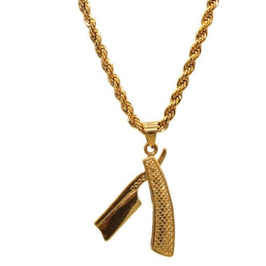 Straight Razor with Necklace Straight Razor Pendant Includes a 26" Necklace that is Gold Filled over Stainless Steel Pendant is 24K Gold Filled over Stainless Steel Pendant Measures 2 1/4" Necklace Measures 26"...