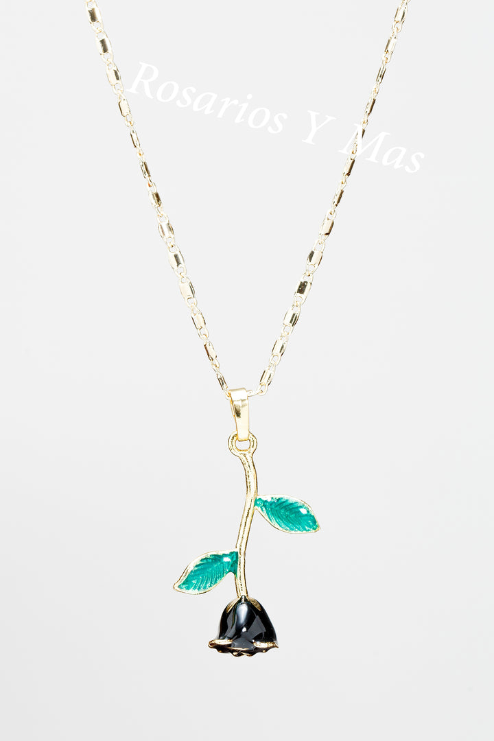 Upside Down Black Rose Pendant with Necklace (24K Gold Filled)