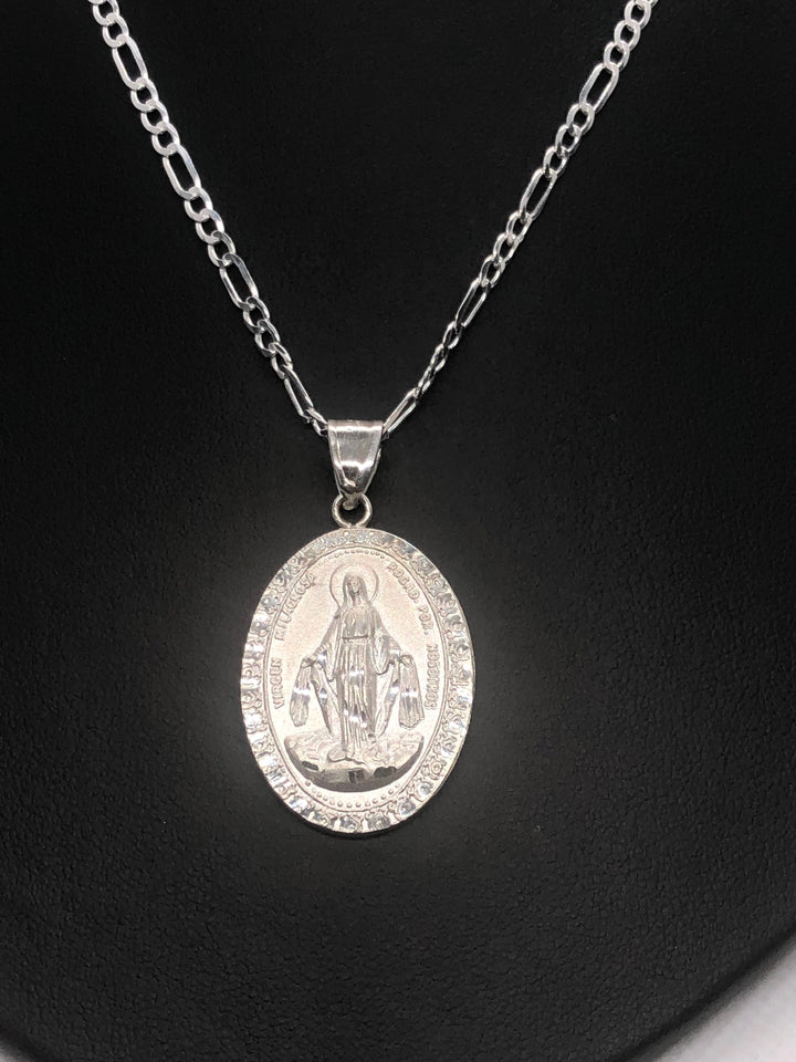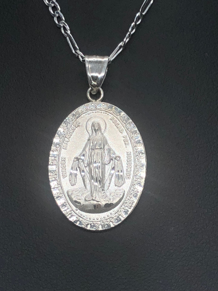 Virgen De La Milagrosa with 22" Necklace (.925 PURE SILVER)