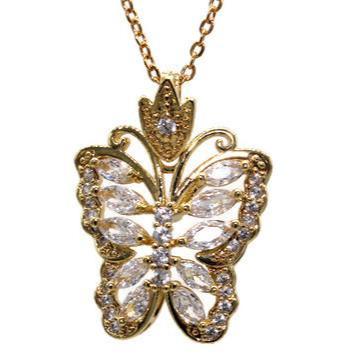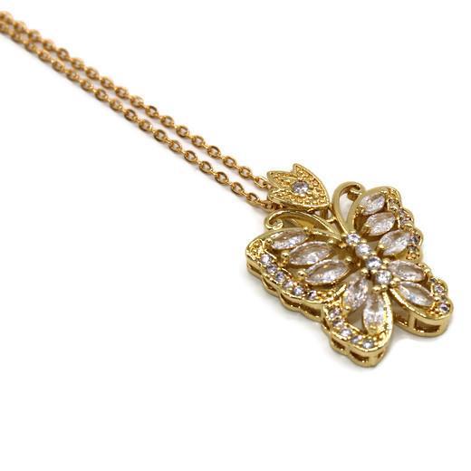 White Butterfly with Necklace Butterfly Pendant with White Stones Includes a 22" Necklace that is Gold Filled over Stainless Steel 24K Gold Filled Pendant Measures 1 1/4" Necklace Measures 22" Mariposa con Cadena...