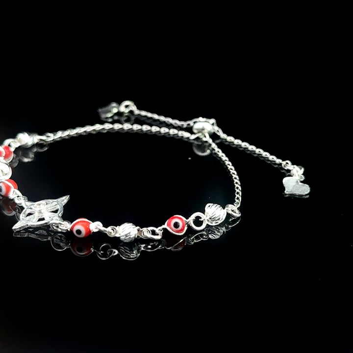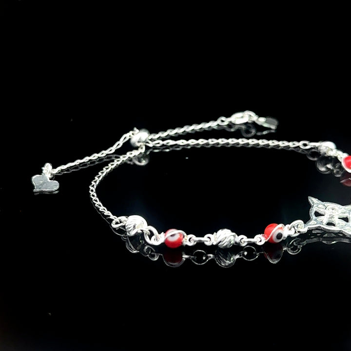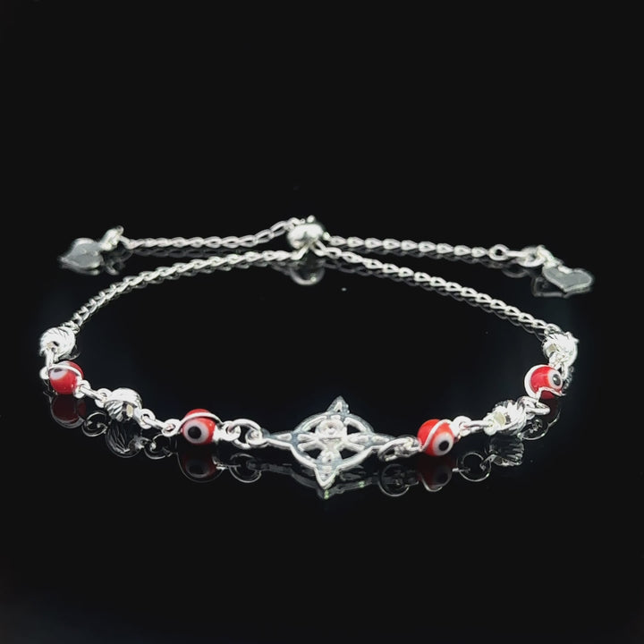 Witch Knot Bracelet Sterling Silver .925 Red Color Evil Eye Round Beads Adjustable
