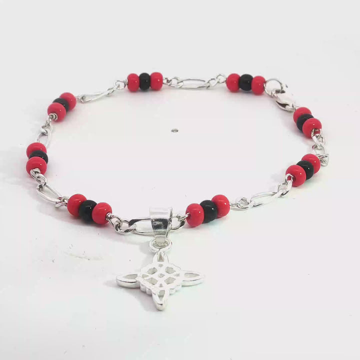 Witch Knot Protection Silver Bracelet Protection Bracelet Witch Knot Charm 100% .925 Silver Red and Black Beads Adjustable Pulsera De...